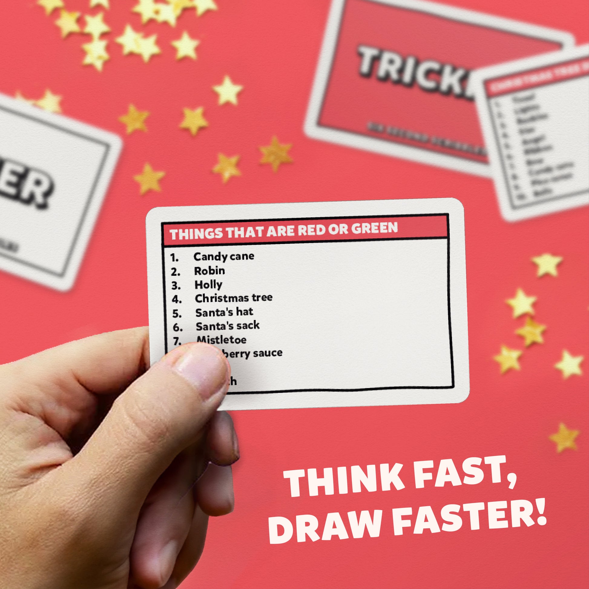You all have ONE minute to draw up to TEN Christmassy things from your card. But not every doodle will do! To win points, your friends and family must be able to guess WHAT you drew.