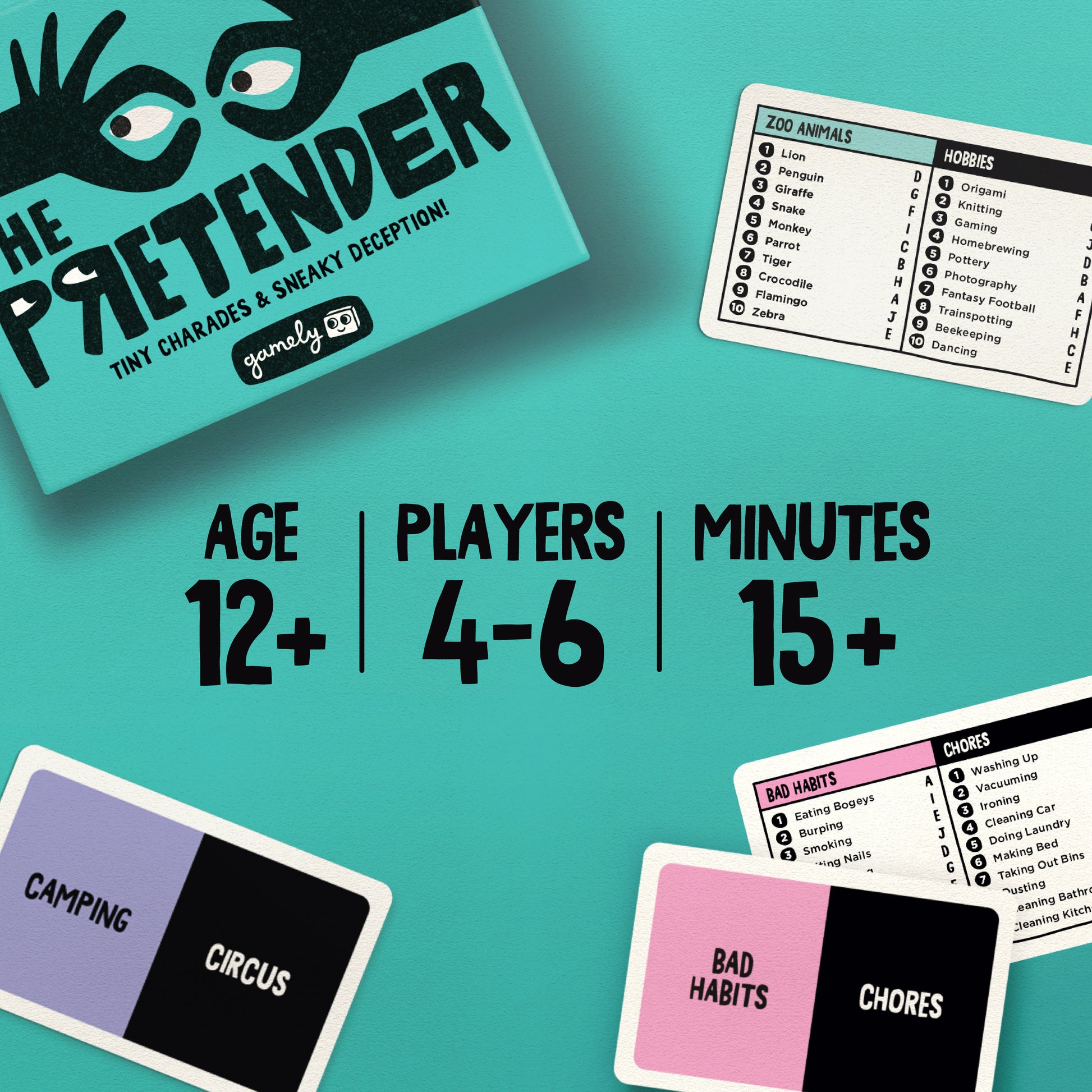 The Pretender is a family-friendly game of subtle deception, bluffing and mini-charades. learn in minutes, laugh for hours.